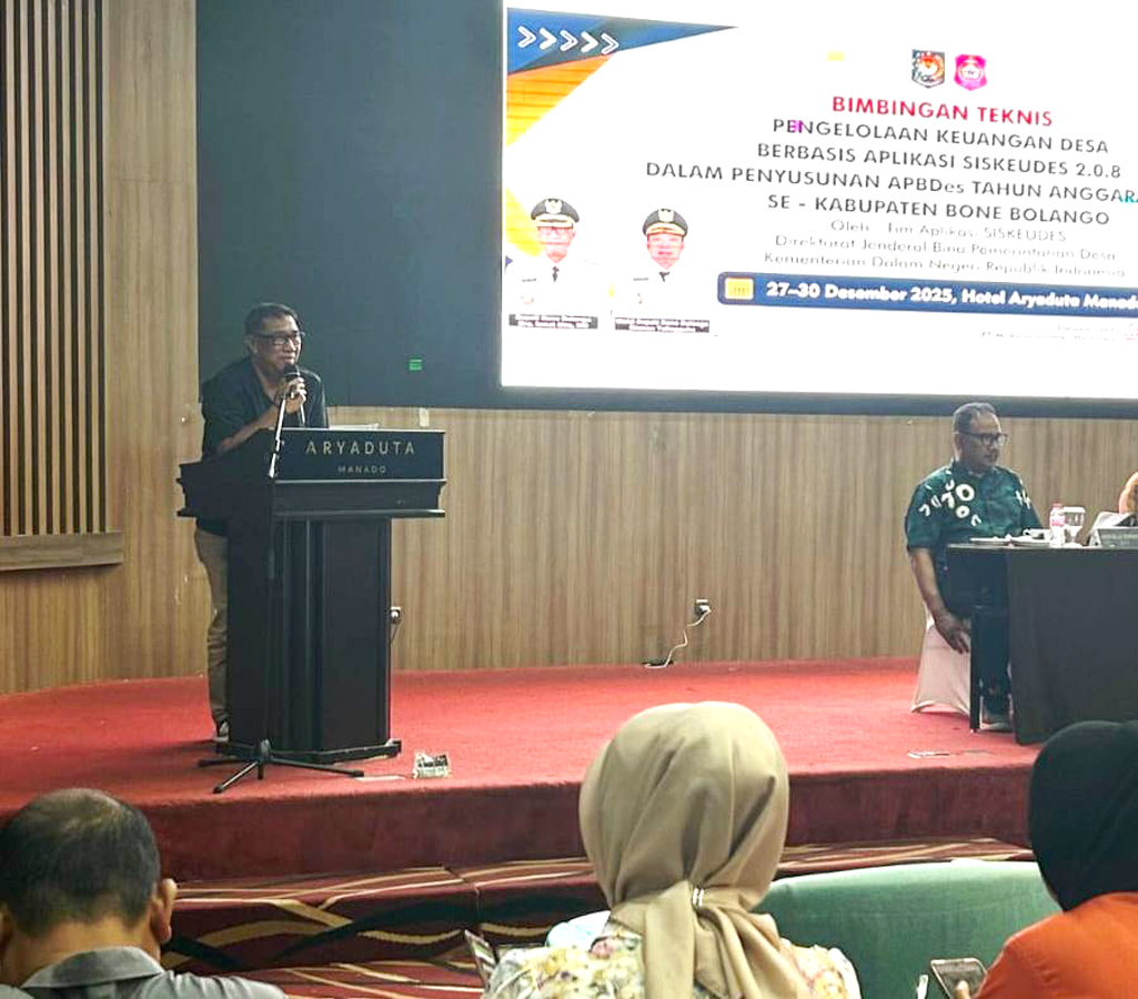 Manado, Berita – Bimbingan teknis (Bimtek) peningkatan kapasitas aparatur Pemerintah Desa (Pemdes) berbasis aplikasi Siskeudes versi 2.0.8 dalam penyusunan APBDes tahun anggaran 2026 se Kabupaten Bone Bolango, resmi ditutup oleh Asisten I Bidang Pemerintahan dan Kesra Setda Bone Bolango, Aznan Nadjamudin, di Hotel Aryaduta Manado, Sulawesi Utara.