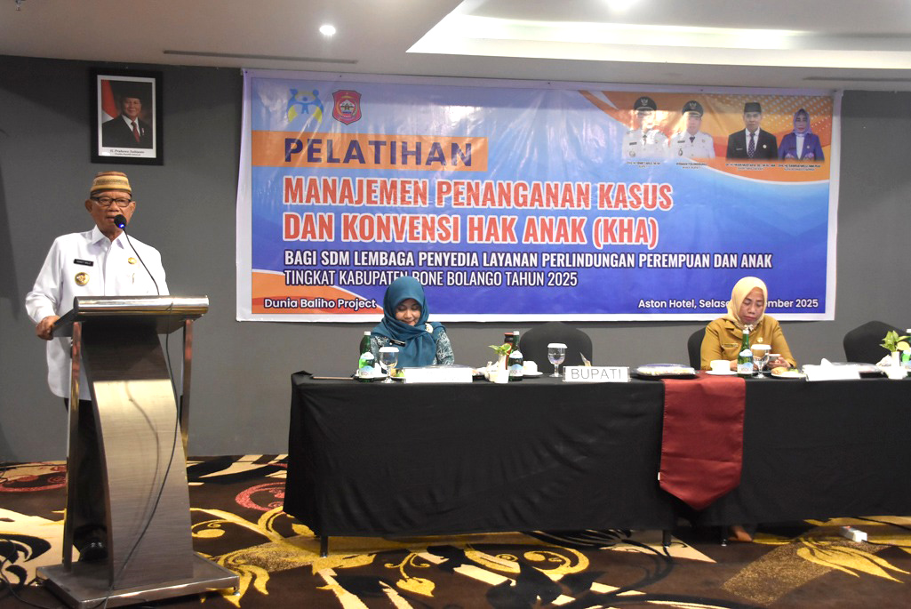 Hal itu disampaikan Bupati Ismet Mile saat membuka Pelatihan Manajemen Penanganan Kasus dan Konvensi Hak Anak (KHA) bagi SDM lembaga penyedia layanan perlindungan perempuan dan anak, yang digelar di Ruang Saronde, Hotel Aston Kota Gorontalo, Selasa (11/11/2025).