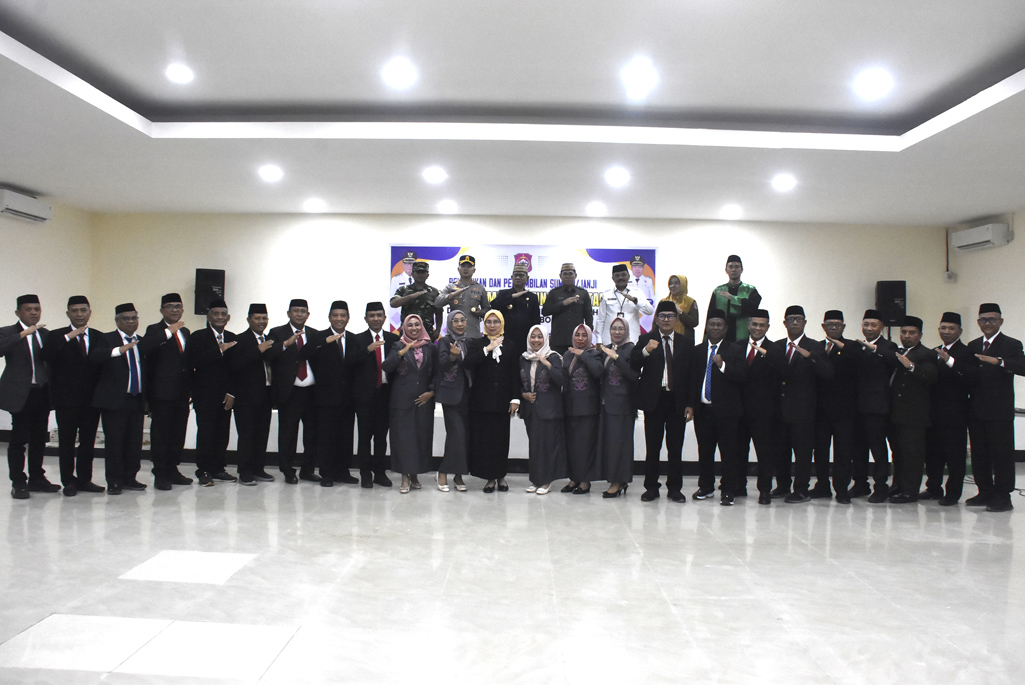 Sebanyak 24 Pejabat Pimpinan Tinggi Pratama di Lingkungan Pemerintah Kabupaten Bone Bolango resmi dilantik dan diambil sumpah oleh Bupati Bone Bolango, Ismet Mile, di Ruang Lupa Lelah, Kantor Bupati Bone Bolango, Senin (20/10/2025). (F.AKP-Diskominfo)