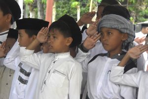 Ratusan Santri saat mengikuti upcara peringatan Hari Santri Nasional tahun 2025 tingkat Kabupaten Bone Bolango, yang digelar di Madrasah Ibtidaiyah (MI) An-Nahdah, Rabu (22/10/2025). (F.AKP-Diskominfo)