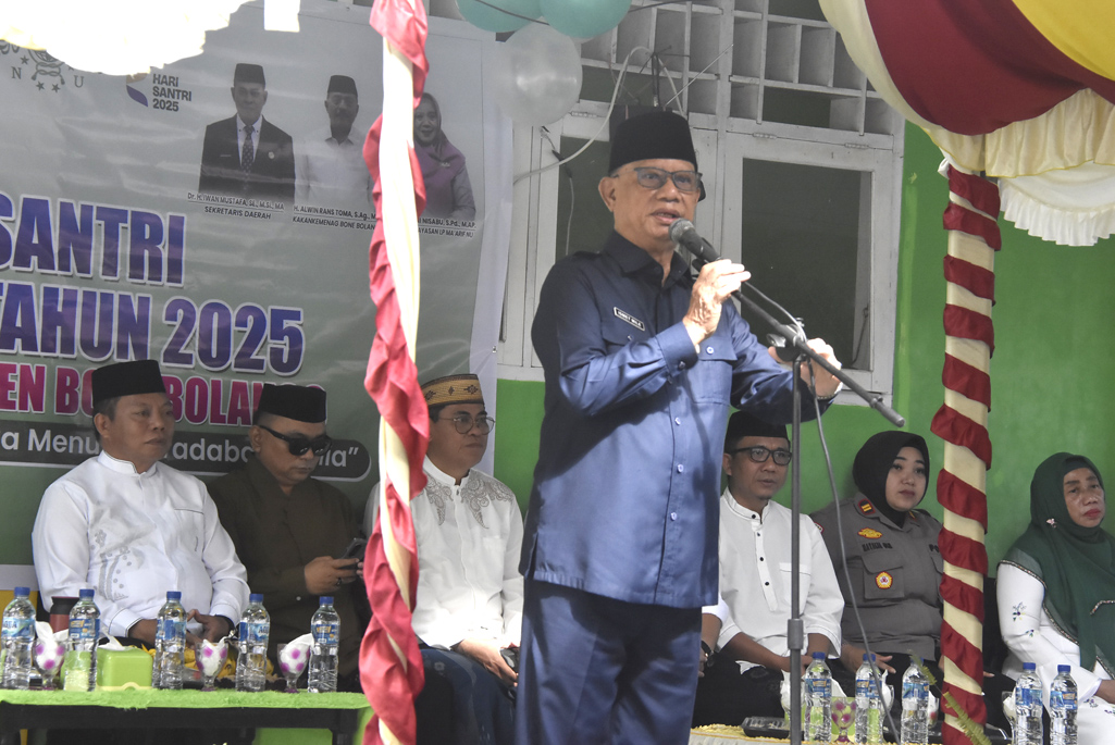 Hal ini disampaikan Bupati Ismet Mile didampingi oleh Wakil Bupati Risman Tolingguhu dan Sekretaris Daerah Iwan Mustapa dalam peringatan Hari Santri Nasional ke-10 Tahun 2025 tingkat Kabupaten Bone Bolango yang dirangkaikan dengan pencanangan Bone Bolango Cinta Al-Quran, digelar di Madrasah Ibtidaiyah (MI) An-Nahdah, Rabu (22/10/2025).