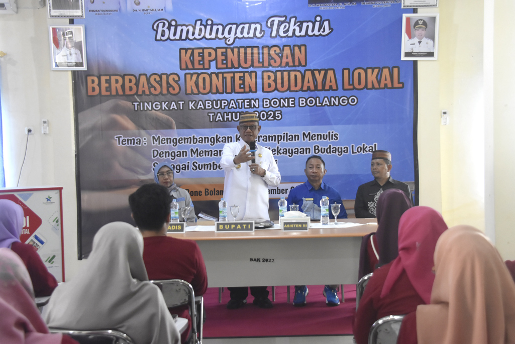 Hal ini ia utarakan saat membuka secara resmi kegiatan bimbingan teknis (Bimtek) penulisan berbasis konten budaya lokal tersebut, di Lantai II Kantor Dinas Perpustakaan dan Kearsipan Kabupaten Bone Bolango, Kamis (13/11/2025).
