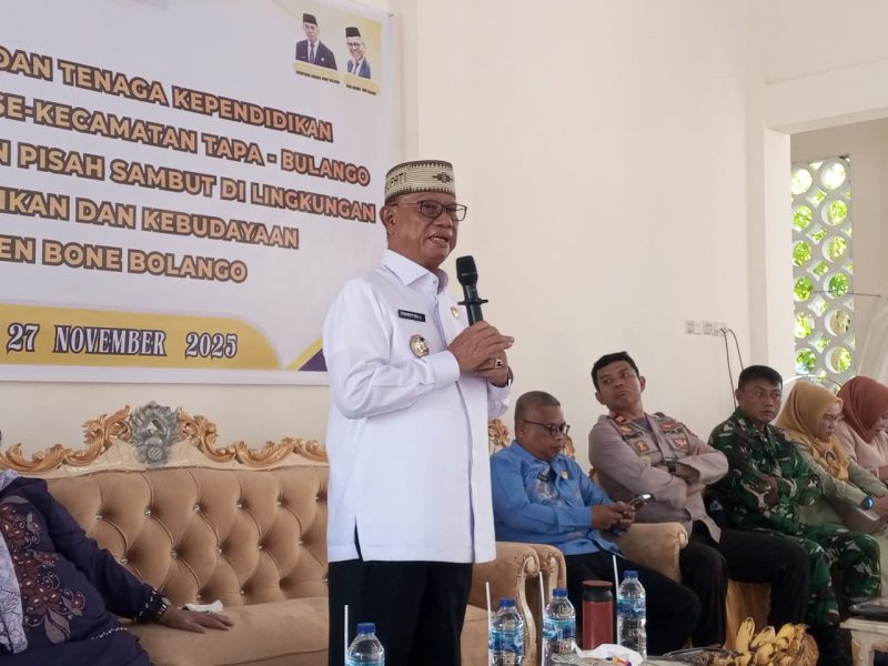 Penegasan itu disampaikan Bupati Ismet MIile saat menghadiri kegiatan Pembinaan Guru dan Tenaga Kependidikan yang dirangkaikan dengan Pisah Sambut Pejabat di Lingkungan Dinas Pendidikan dan Kebudayaan Bone Bolango di BPU Kecamatan Tapa, Kamis (27/11/2025).