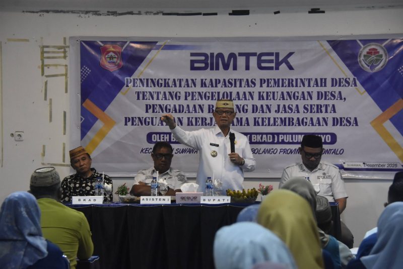 Penegasan itu disampaikan Bupati Ismet Mile saat membuka Bimbingan Teknis Peningkatan Kapasitas Pemerintah Desa Tentang Pengelolaan Keuangan Desa, Pengadaan Barang dan Jasa serta Penguatan Kerja Sama Kelembagaan Desa se Kecamatan Suwawa di Hotel Toewawa, Rabu (3/12/2025).