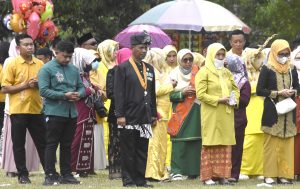 Peringatan Hari Sumpah Pemuda ke-97 tahun 2025 tingkat Kabupaten Bone Bolango, di lapangan Alun-Alun Bone Bolango, Selasa (28/10/2025), diwarnai balutan pakaian adat dari berbagai daerah, dimana seluruh Aparatur Sipil Negara (ASN) kompak memakai baju adat nusantara. (F.AKP-Diskominfo)