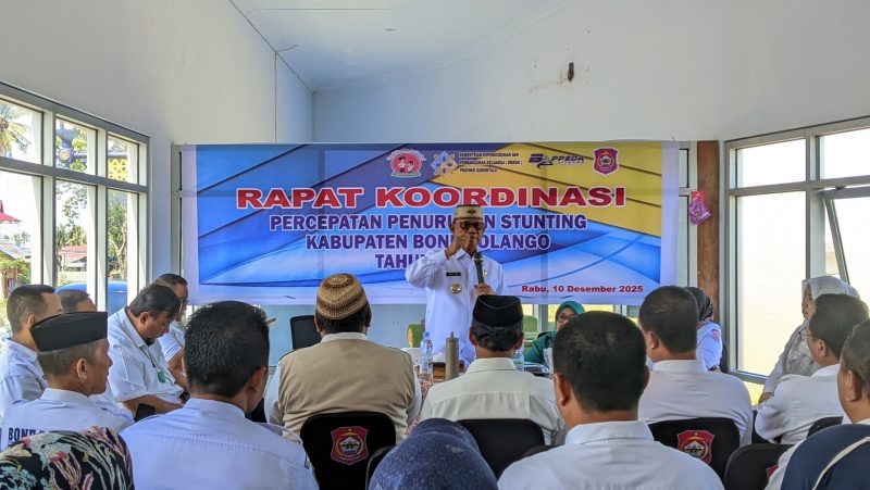 Hal itu disampaikan Bupati Ismet Mile didampingi Ketua T.P PKK Bone Bolango, Ruwaida Ismet Mile saat membuka Rapat Koordinasi Percepatan Penurunan Stunting Kabupaten Bone Bolango Tahun 2025 yang digelar di Gallery dan Coffee Shop Bone Bolango, Rabu (10/12/2025).