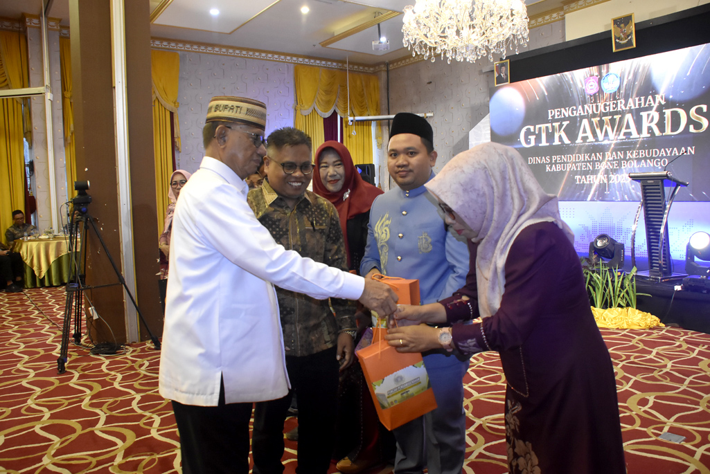 Kota Gorontalo, Berita – Bupati Bone Bolango, Ismet Mile menghadiri kegiatan Penganugerahan Guru dan Tenaga Kependidikan (GTK) Awards 2025 yang diselenggarakan oleh Dinas Pendidikan dan Kebudayaan Kabupaten Bone Bolango, di Grand Q Hotel, Kota Gorontalo, Minggu (26/10/2025).