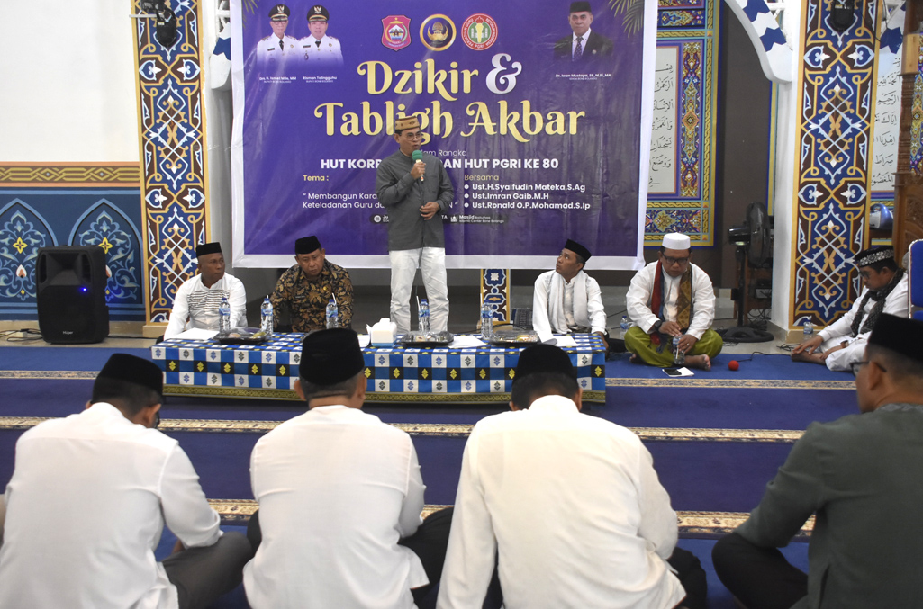 Suwawa, Berita – Pemerintah Kabupaten Bone Bolango menggelar Zikir dan Tabligh Akbar yang merupakan bagian dari peringatan Hari Ulang Tahun (HUT) ke-54 Korpri, Hari PGRI ke-80, dan HUT ke-24 Provinsi Gorontalo, di Masjid Baitul Haq Islamic Center Bone Bolango, Jumat (5/12/2025).