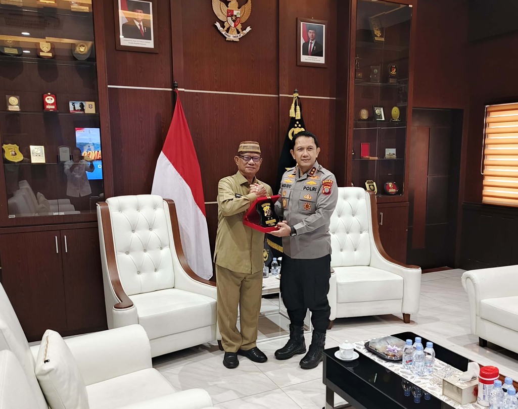 Bupati Bone Bolango, Ismet Mile, melakukan kunjungan silaturahmi ke Kapolda Gorontalo Irjen Pol Widodo, di Mapolda Gorontalo, Senin (20/10/2025). (F.Istimewa)